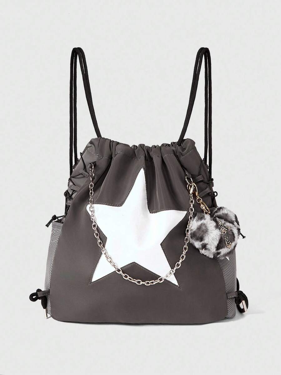Grunge Punk 1 Zaino stile gotico a forma di stella pentagonale abbinato a uno zaino da donna alla moda con stampa leopardata a forma di cuore, borsa da donna elegante e unica (1 borsa e set di accessori)