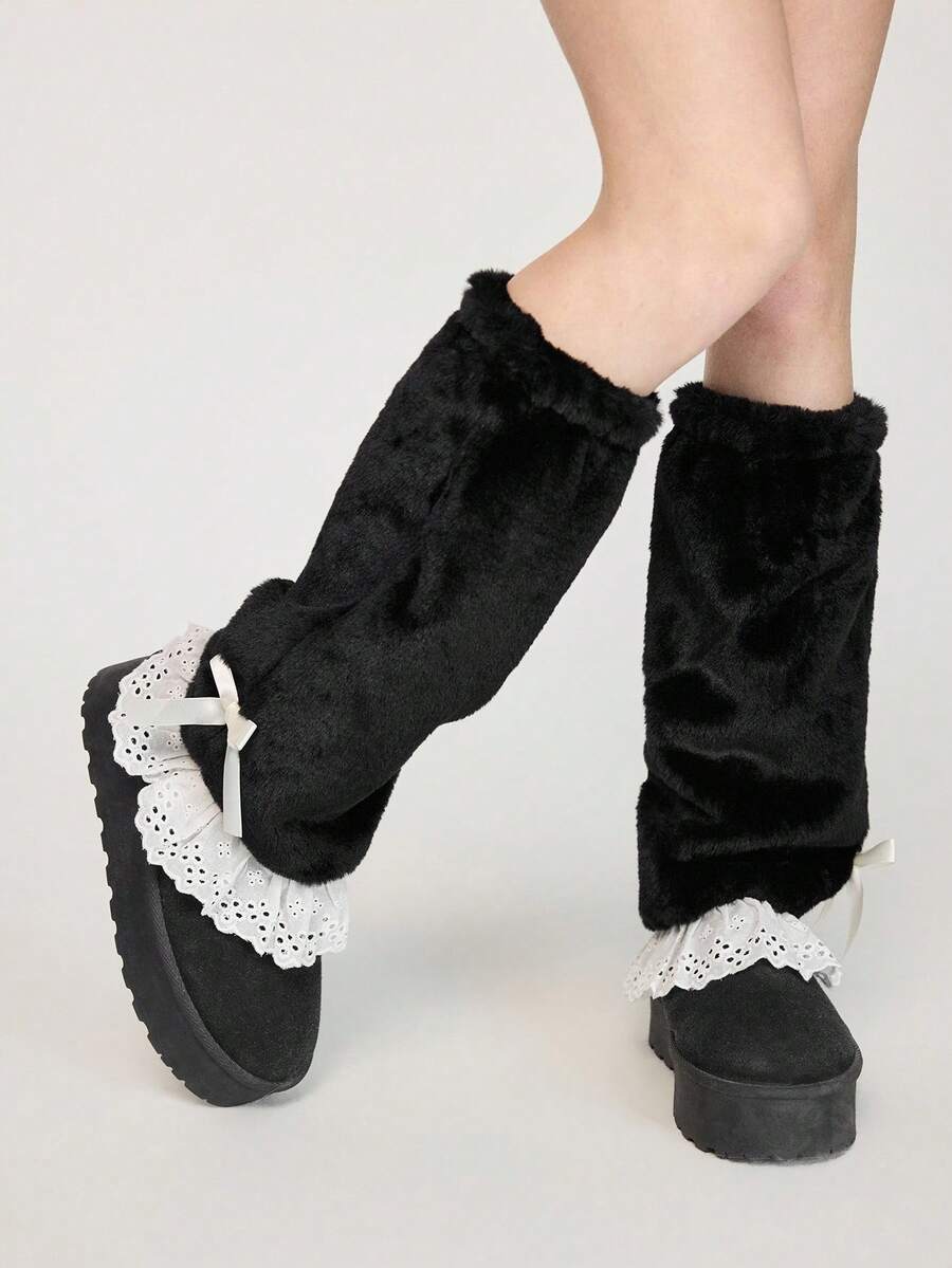Kawaii 1 Paio di scaldamuscoli con fiocco in pizzo a contrasto nero, design retrò minimalista stile Y2K per donna, adatti per uso quotidiano, scuola, appuntamenti, shopping, viaggi, ecc.