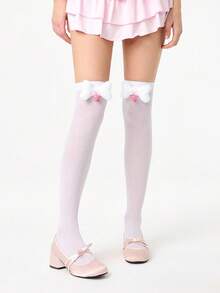 Kawaii 1 Paio Di Calze Sopra Il Ginocchio Morbide E Pelose A Forma Di Osso, Calze Alte Con Fiocco E Campanellino Stile Lolita, Collant Sottili Ed Elastici Per Uso Quotidiano