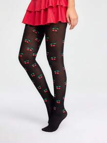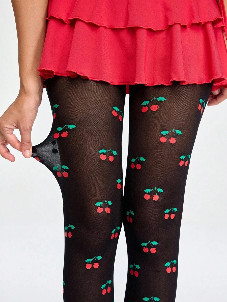 Kawaii 1 Paio di calze a rete in stile gotico scuro e reversibile con stampa a ciliegie, adatte per Ognissanti