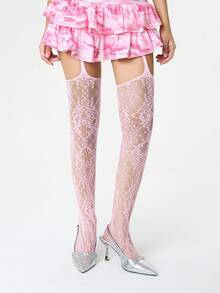 Kawaii 1 Paio di Sexy Calze Sospensorio Minimaliste di Colore Rosa Tinta Unita, Collant Jacquard Trasparenti ed Elastici, Calze Ultra Sottili e Traspiranti