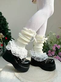 Fairycore 1 Paio Di Carini Scaldamuscoli Bianchi A Maglia, Scaldamuscoli Primaverili Multistrato Con Fiocco In Pizzo