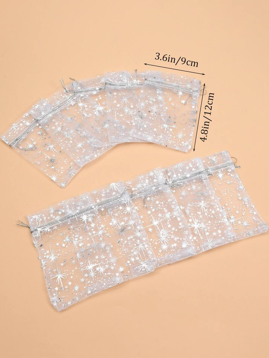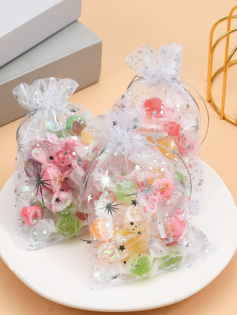 10 pezzi Buste regalo in rete a stelle rosa chiaro con cordoncino, sacchetti per immagazzinaggio, per Natale, Ramadan, decorazioni per Ramadan, Eid Mubarak
