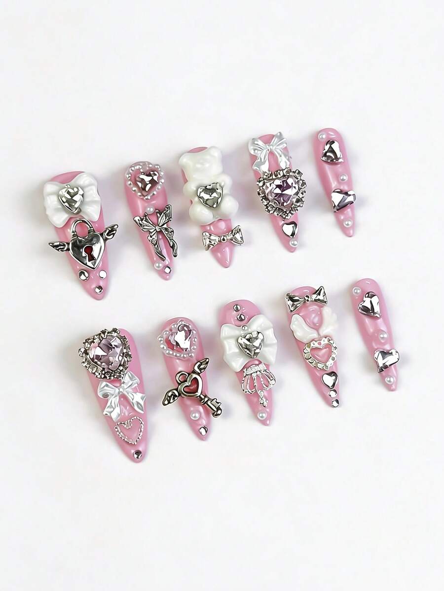 Anime 10 pezzi Adesivi per unghie Y2K carini a forma di cuore, stella, fiocco, ala con nastro