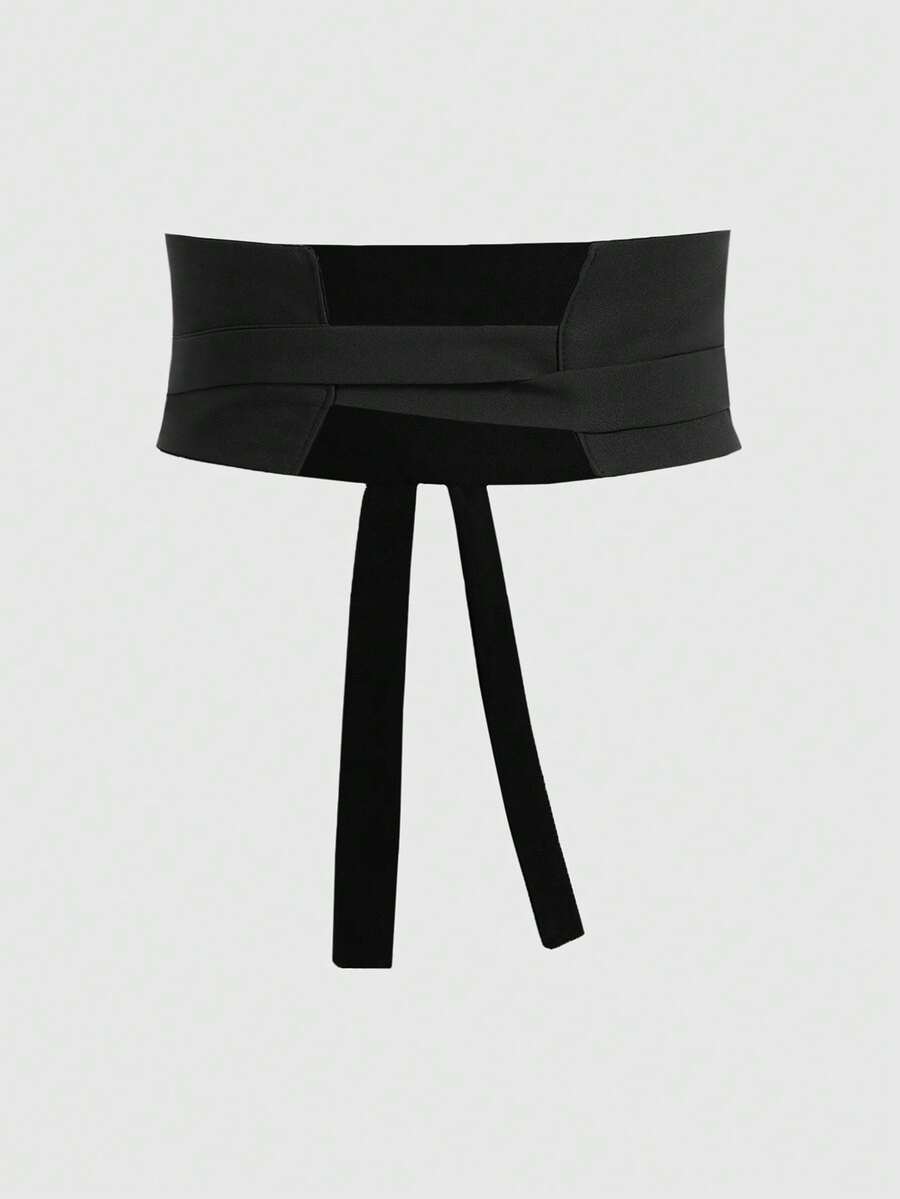 1 pezzo Cintura larga nera retrò con ricamo di gru e fiori, semplice e versatile, accessorio singolo da donna