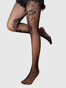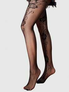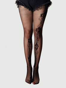 Goth 1 Coppia Di Calze In Rete Jacquard Con Motivo Di Rose Gotiche E Lavorazione Traforata, Per Donne, Adatte Per Tutte Le Stagioni, Ognissanti