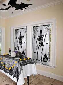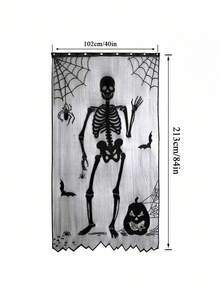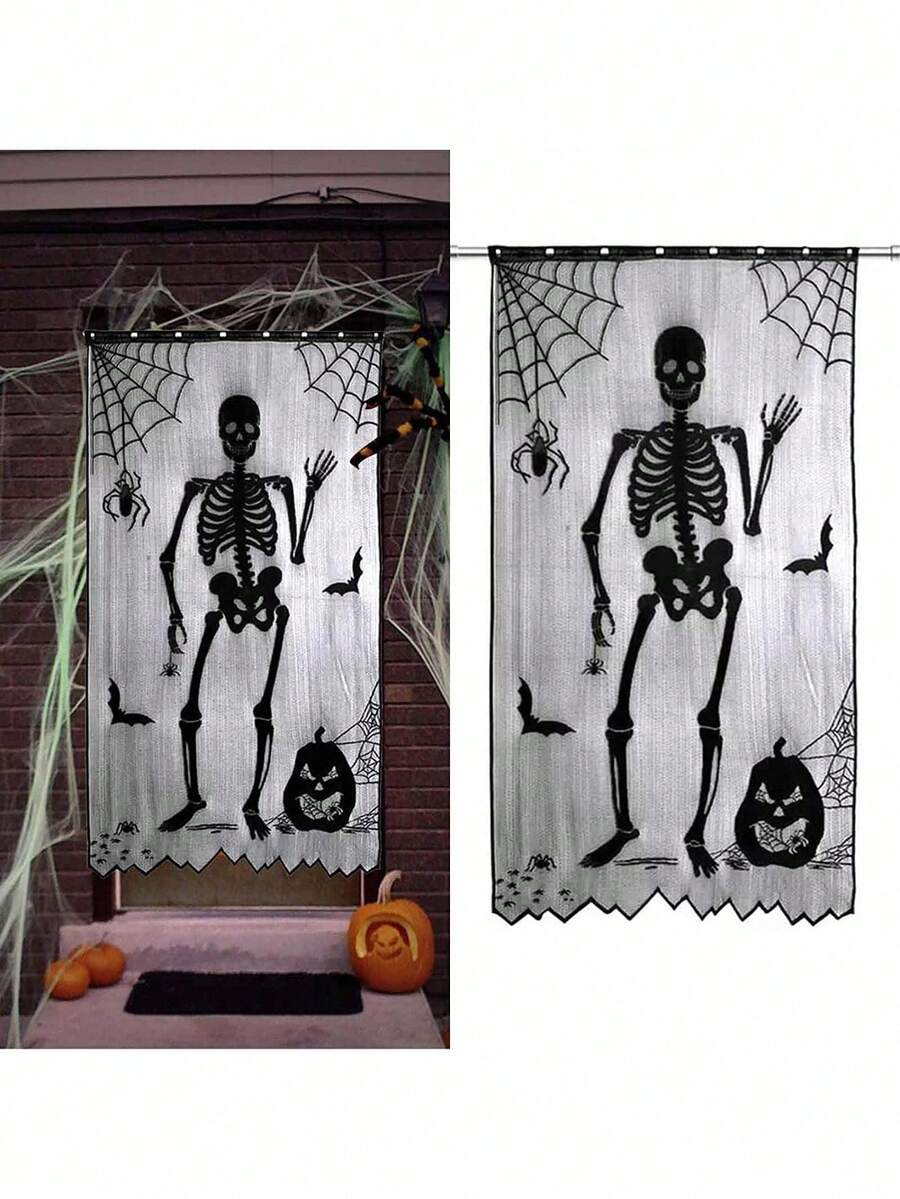 Goth 1 pezzo Tenda per porta con ragnatela di pizzo nera, teschio e ossa umane - Decorazione per porta e finestra di Ognissanti, decorazione per la casa, decorazioni festive