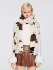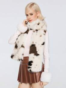 1 pezzo Sciarpa casual alla moda in stile Y2K, bianco e nero, kawaii, dolce, con stampa leopardata e colori a contrasto, adatta per scuola, shopping, viaggi, Natale e altro
