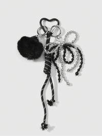 Kawaii 1 pezzo Portachiavi/ciondolo da borsa in stile Y2K con fiocco nero in macramè