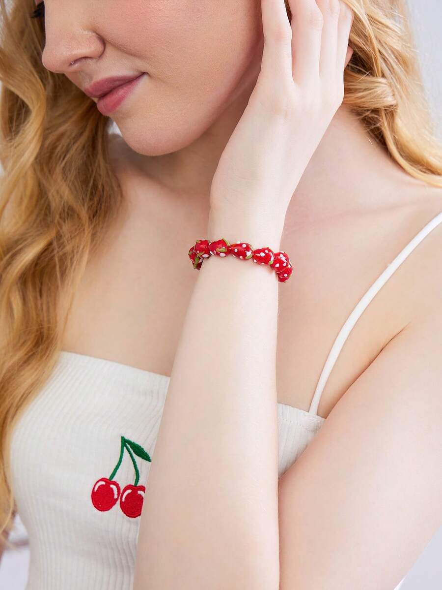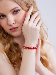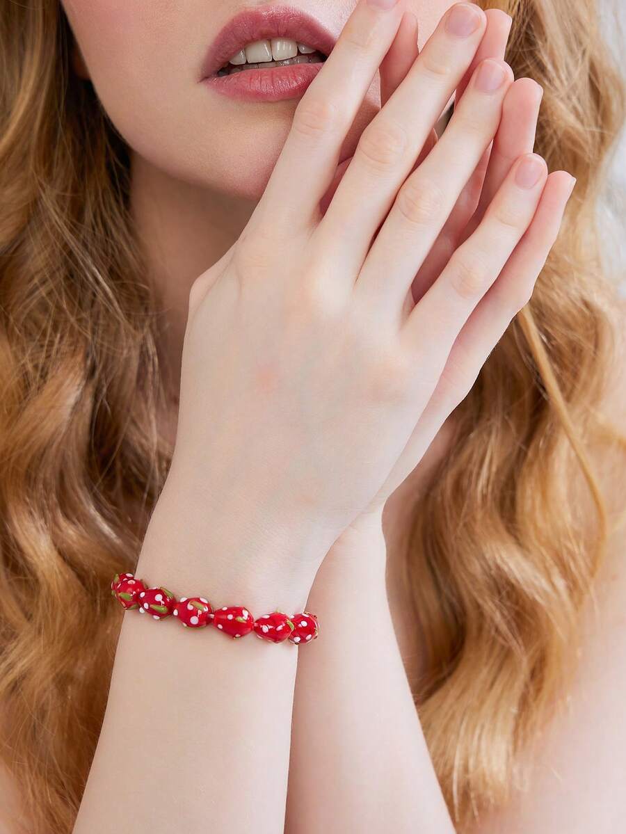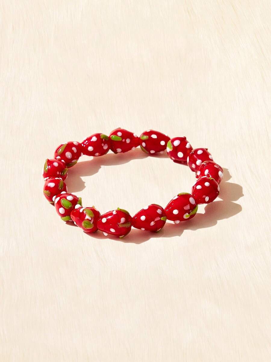 Kawaii 1 pezzo Braccialetto con perline carino vetro fragola design per donne per decorazione quotidiana