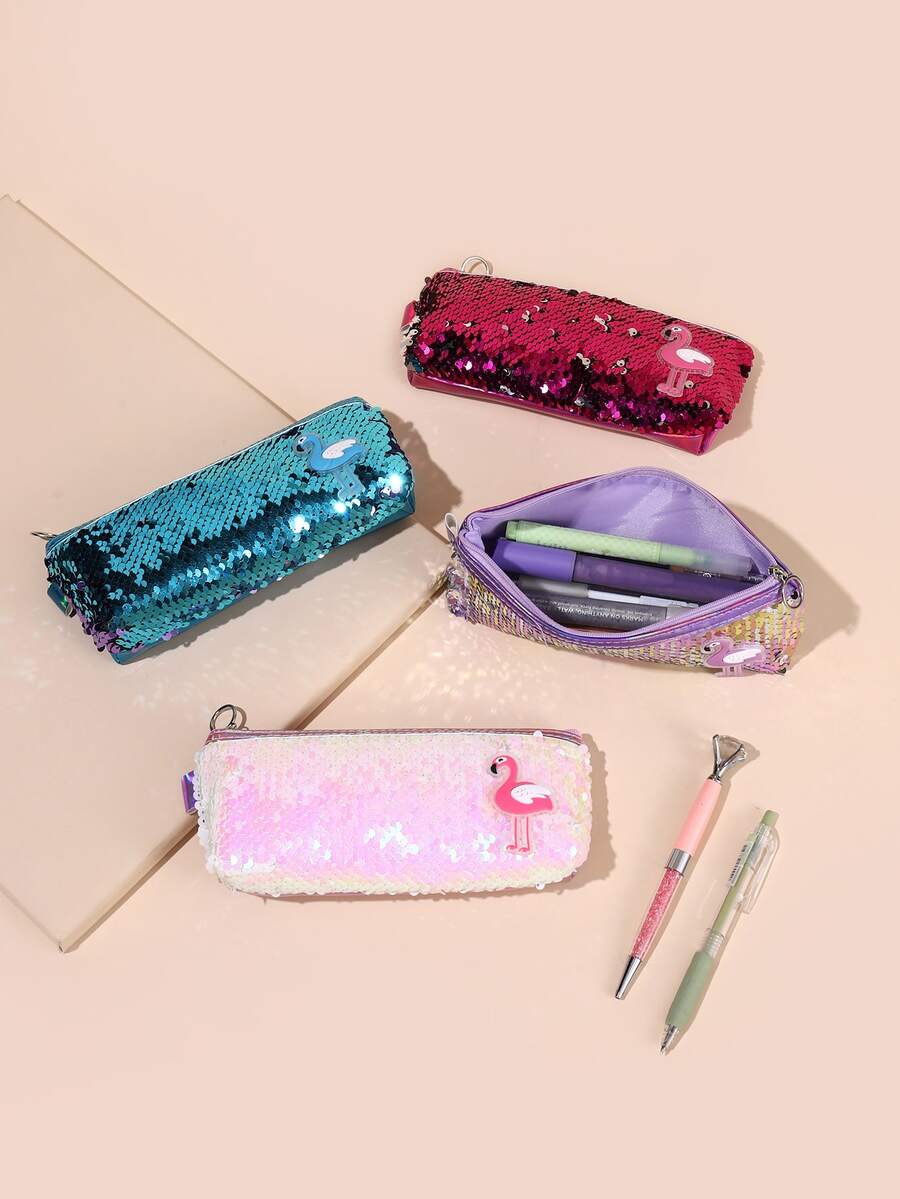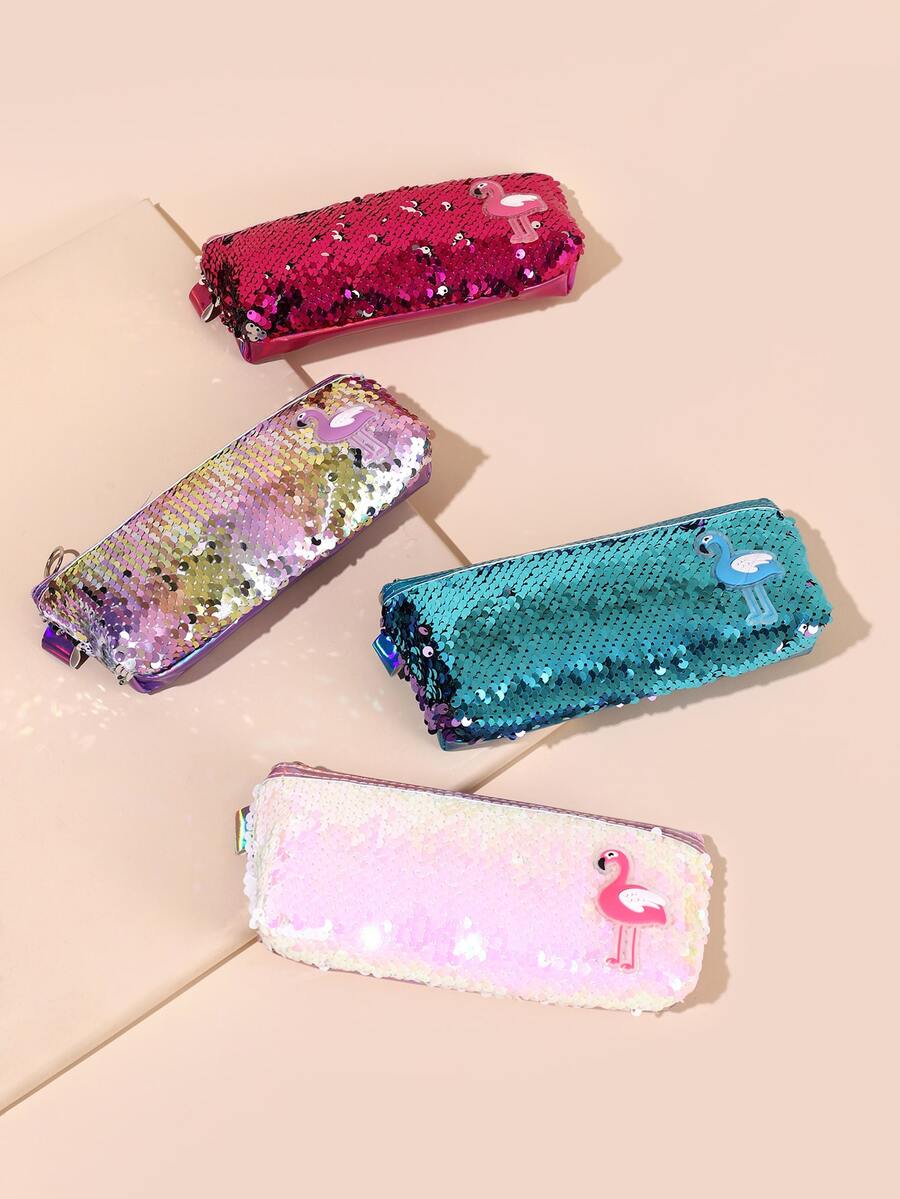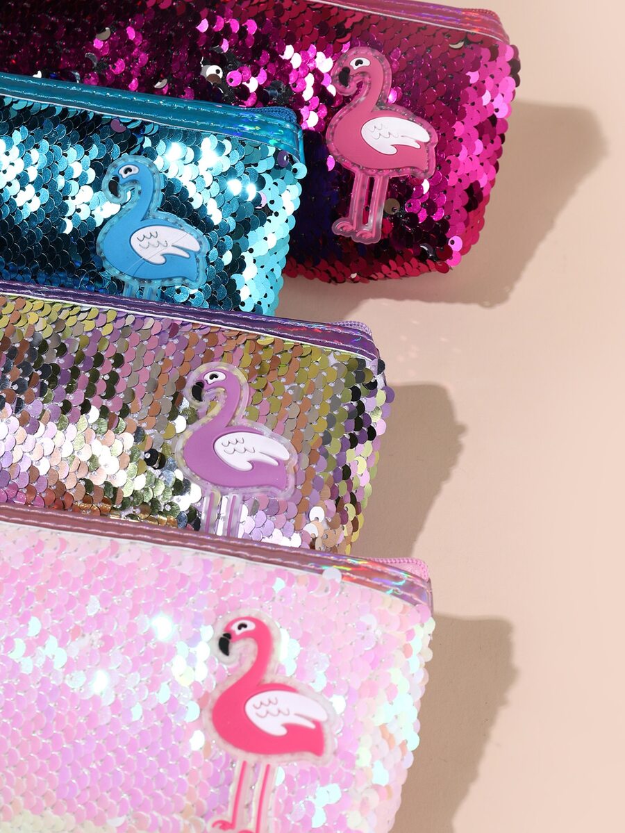 1 pezzo astuccio per matite con paillettes casuali con dettaglio di fenicotteri