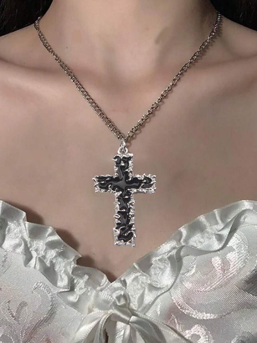 Goth 1 pezzo Collana con ciondolo a croce in lega di titanio glamour, regalo per appuntamenti per donne