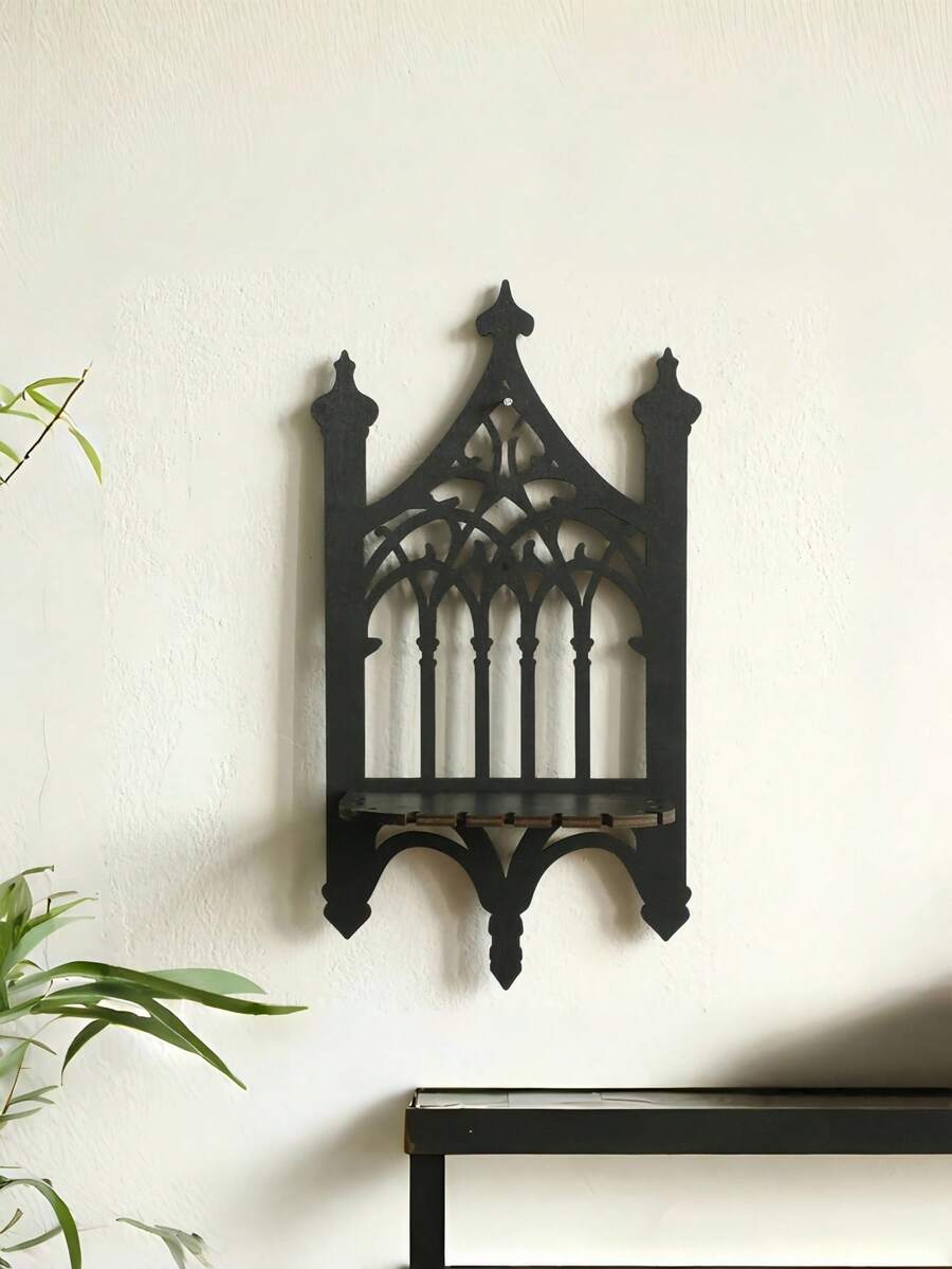 Goth 1 pezzo Mensola da parete stile recinzione nera in legno, mensola galleggiante minimalista, per organizzare decorazioni per camera da letto, casa e case vacanza