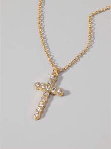 Goth 1 pezzo Collana con ciondolo a croce gotica di lusso con strass, regalo per feste, Ognissanti