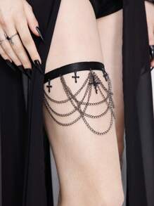 Goth 1 pezzo di cavigliera a catena multi-strato con croce nera in stile gotico, adatta per l"uso quotidiano