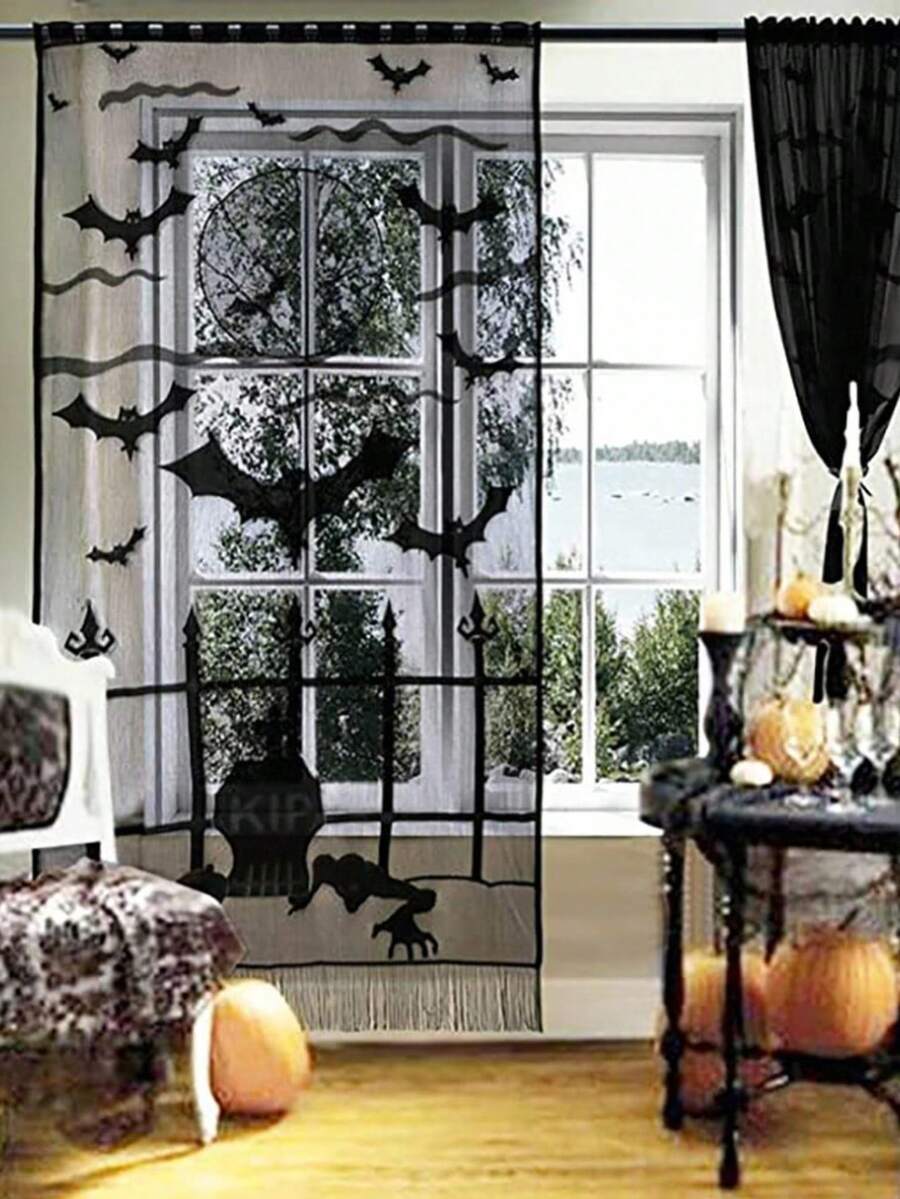 Goth 1 pezzo Tenda per porta di Ognissanti con demone, tenda per porta con pipistrelli, tenda con pizzo nero e nappa per la Festa degli Spiriti, decorazioni per la casa e regali festivi