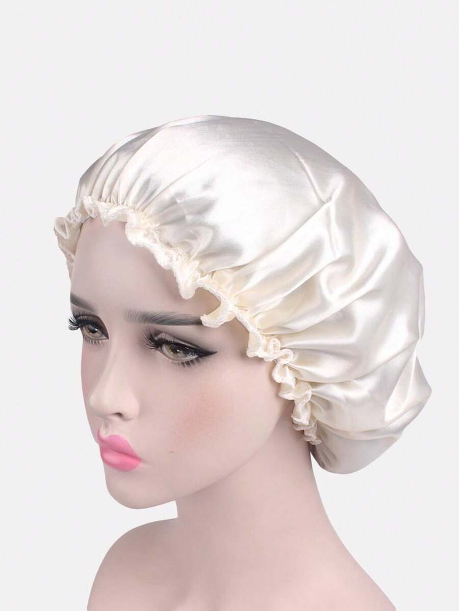 1 pezzo Cuffia da notte in raso con bordo in pizzo per signora, adatta per l