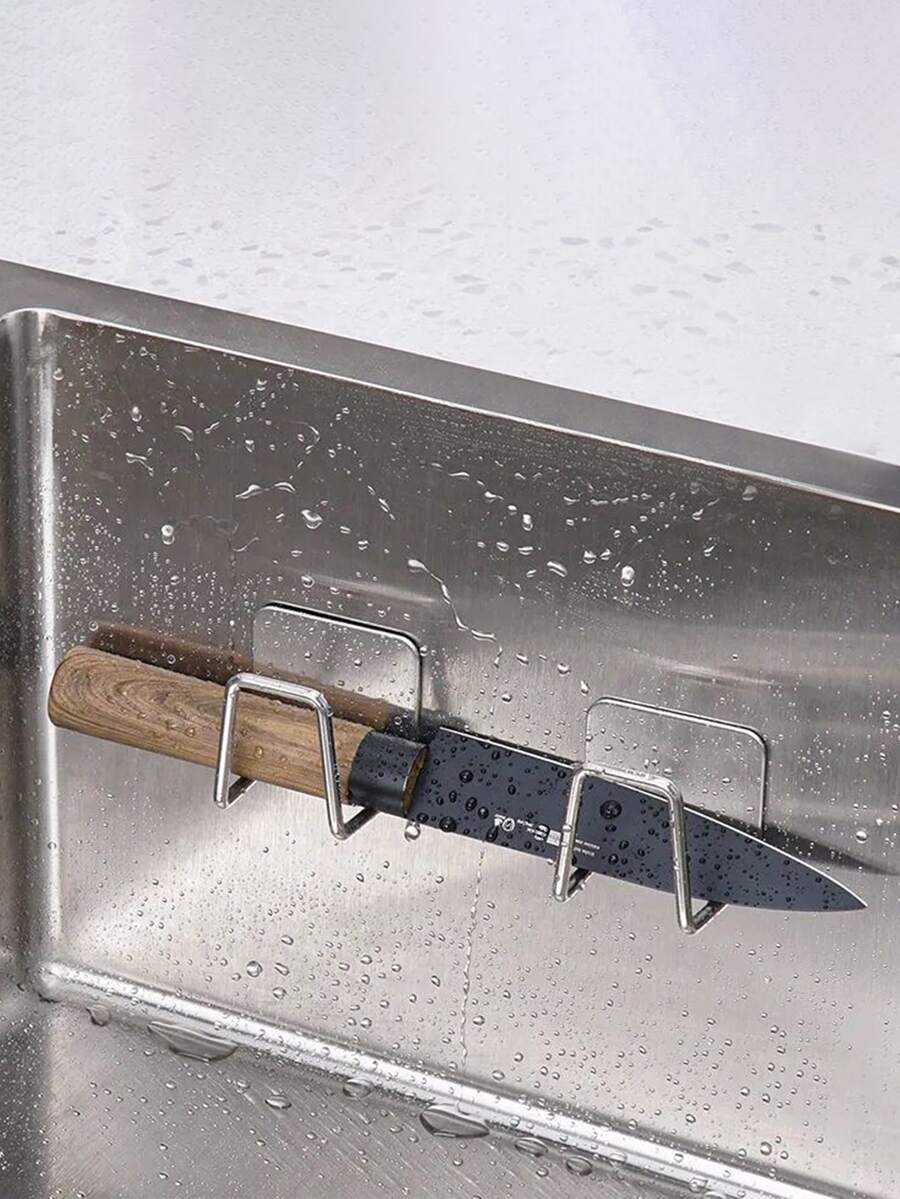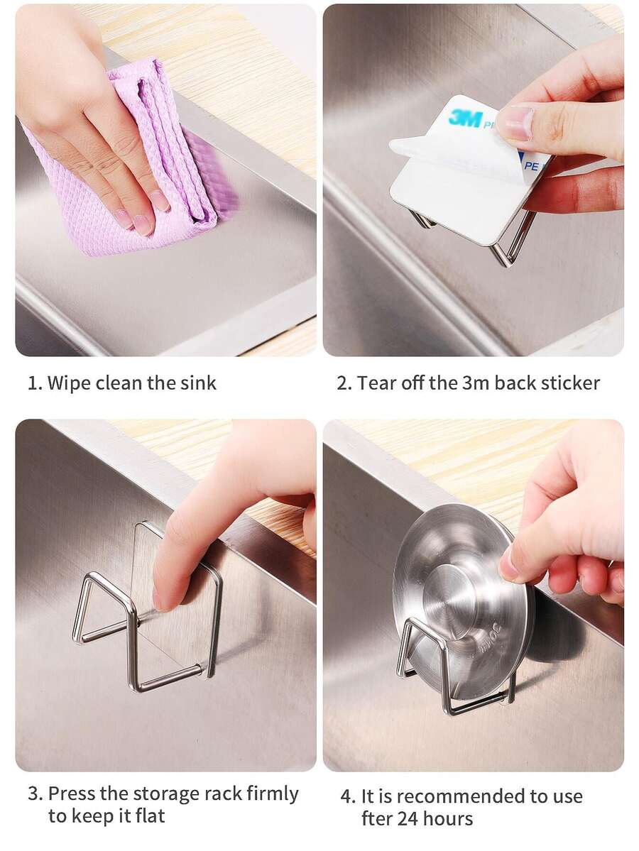 1 pezzo Porta-spugna senza fori, rastrelliera da parete per spugne, griglia da lavandino in acciaio inossidabile