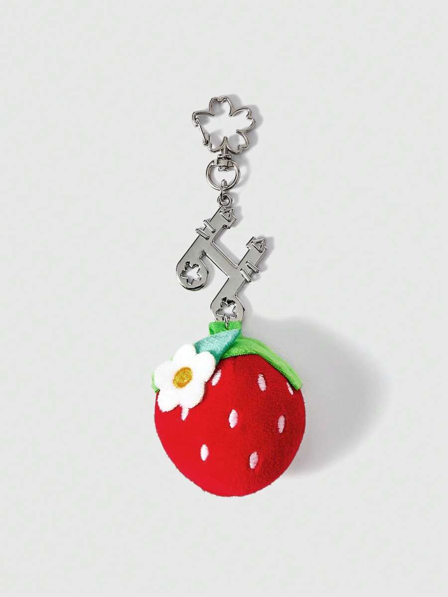 Kawaii 1 pezzo Portachiavi e anello portachiavi con nota musicale e design a fiore di fragola rossa, accessorio multifunzionale carino e alla moda adatto per borsa, pantaloni, scuola, shopping, appuntamenti