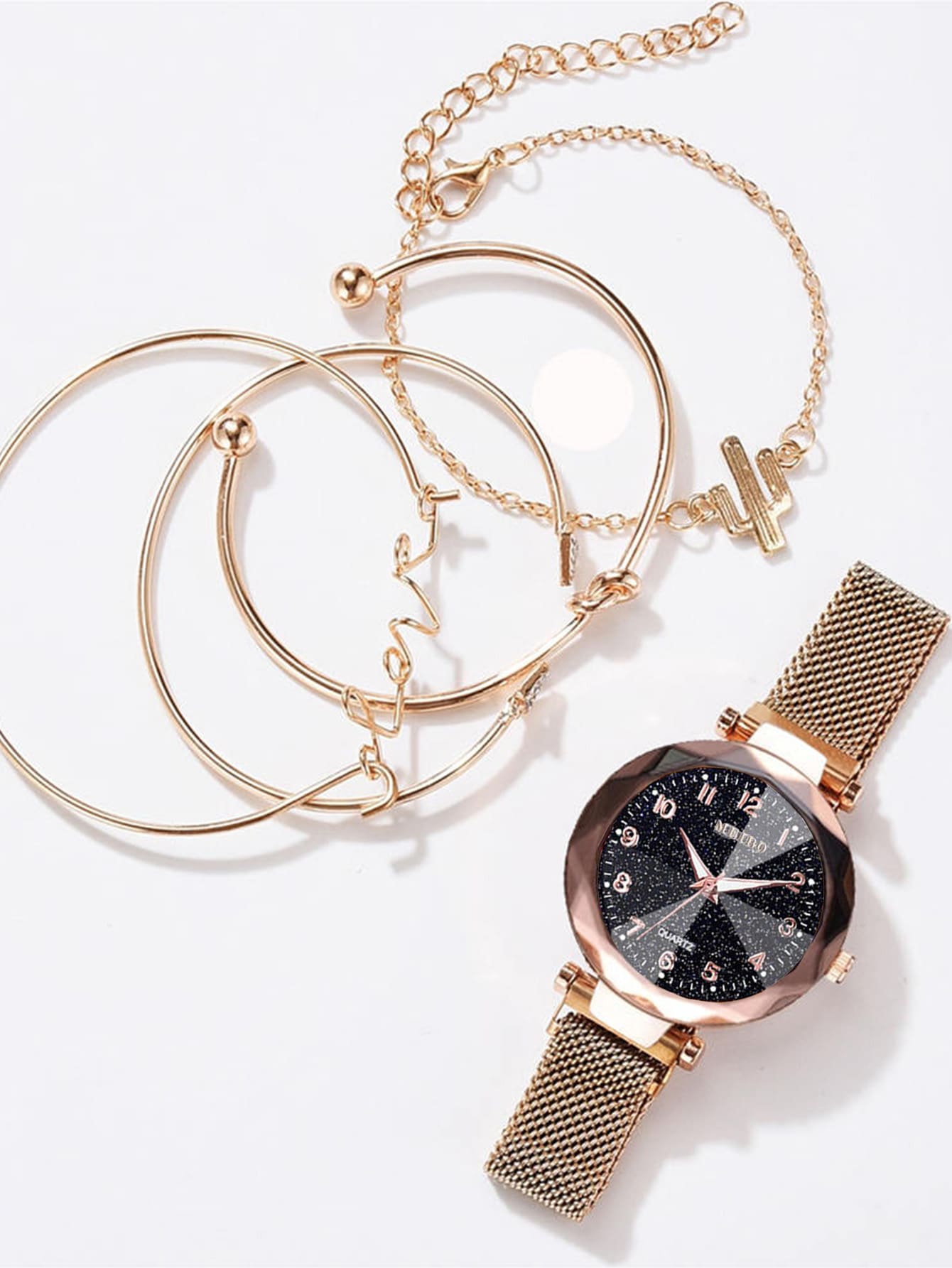 1 pezzo orologio al quarzo con puntatore rotondo e 4 pezzi braccialetto