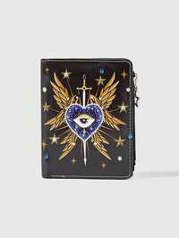 Goth 1 pezzo Portafoglio gotico da donna per primavera/estate, con motivi di occhi, gemme, lacrime, stelle, cuori, soli e croci, di colore nero, adatto per uso quotidiano e Ognissanti