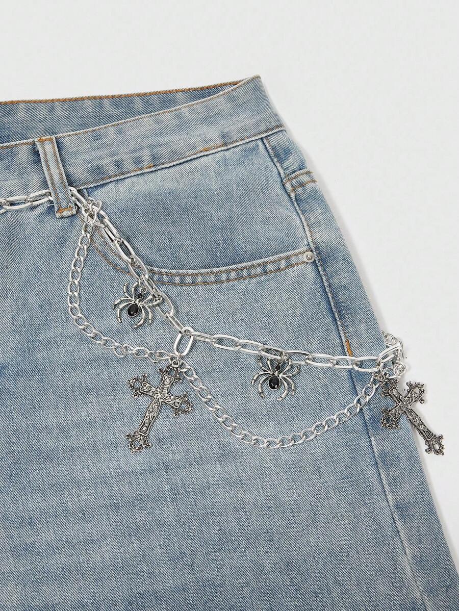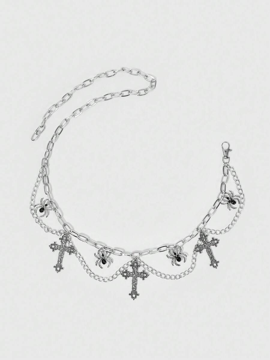 Goth 1 pezzo Catena per la vita da donna in stile gotico con cristalli argentati a forma di ragno, decorazione a croce, da indossare con abiti, jeans, accessorio per Ognissanti