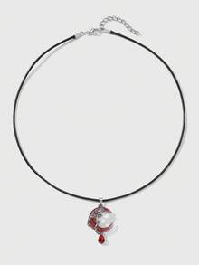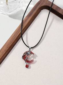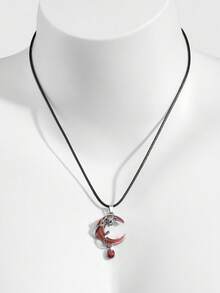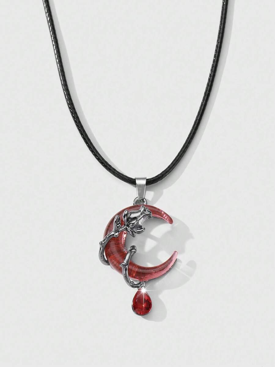 Grunge Punk 1 pezzo Collana con pendente a forma di rosa con spine, luna e cristalli rossi finti, in stile retrò punk gotico, adatta per uso quotidiano di donne e ragazze, regalo per le vacanze
