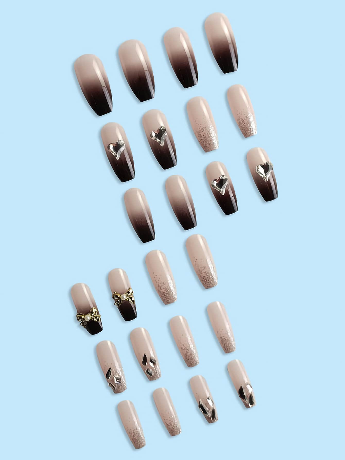 24 pezzi lungo bara 3D con decorato fiocco Unghie finte & 1 foglio nastro