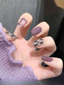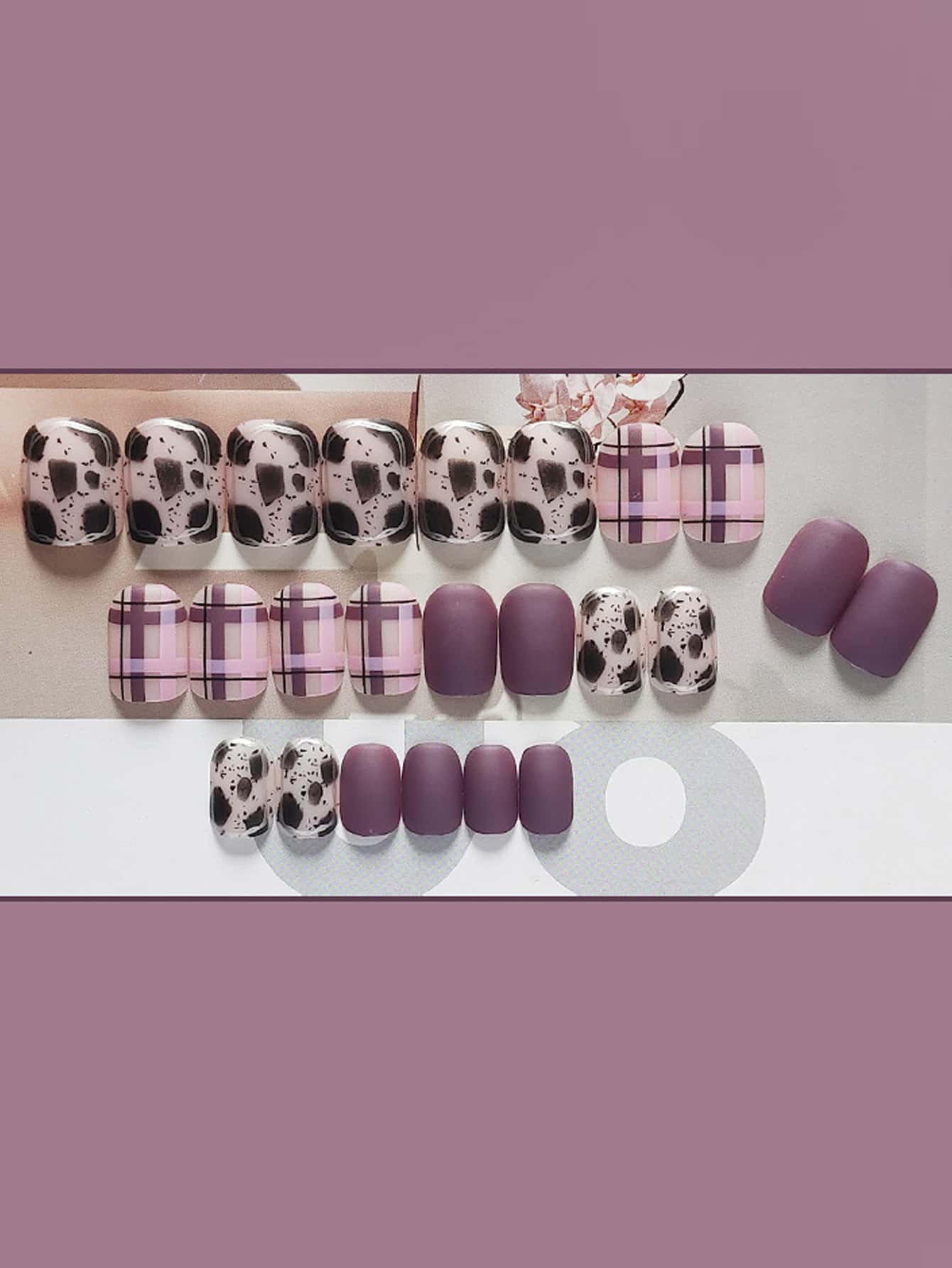 24 pezzi corto quadrato a quadri Unghie finte & 1 foglio nastro