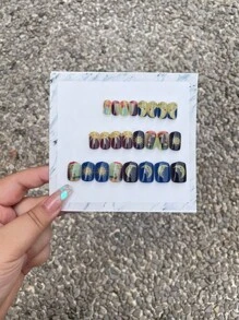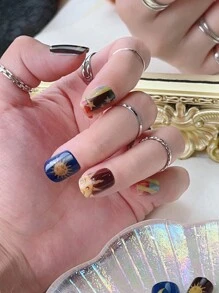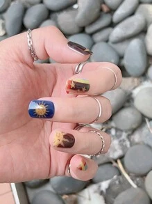 24 pezzi corto quadrato modello sole e luna Unghie finte Kit
