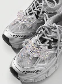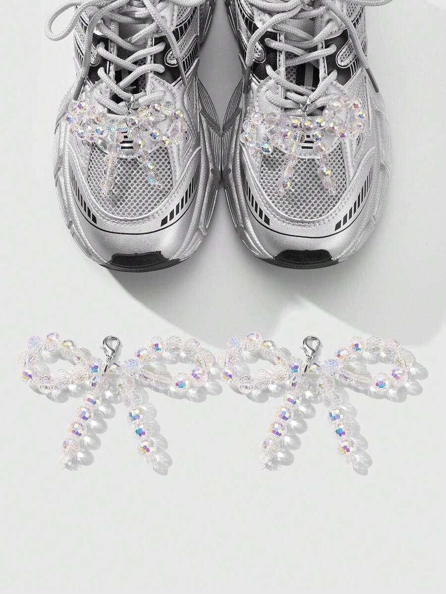 Kawaii 2 pezzi Accessori eleganti per scarpe stile Ins, realizzati a mano con perle e cristalli trasparenti a forma di sirena e fiocco, accessori di moda adatti per le donne per uso quotidiano o come regalo