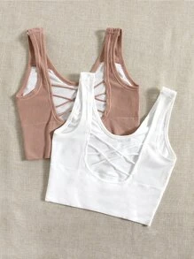 2 pezzi Reggiseni sportivi supporto medio senza cuciture leggero incrociato