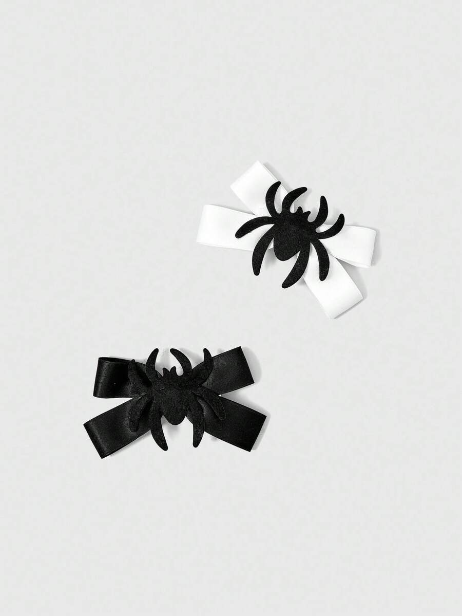 Grunge Punk 2 pezzi Fermagli per capelli stile punk con design a ragno e fiocco, fermagli per capelli in alligatore di alta qualità, accessori per capelli di moda unici per Ognissanti