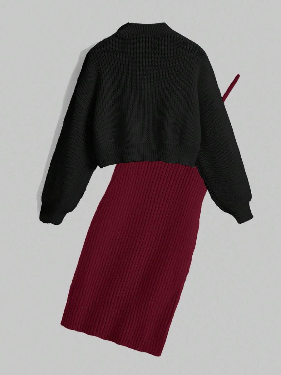 Kawaii 2 pezzi Set di cardigan lavorato a maglia con maniche a goccia e fiocco decorativo e vestito a sottoveste lavorato a maglia per donna