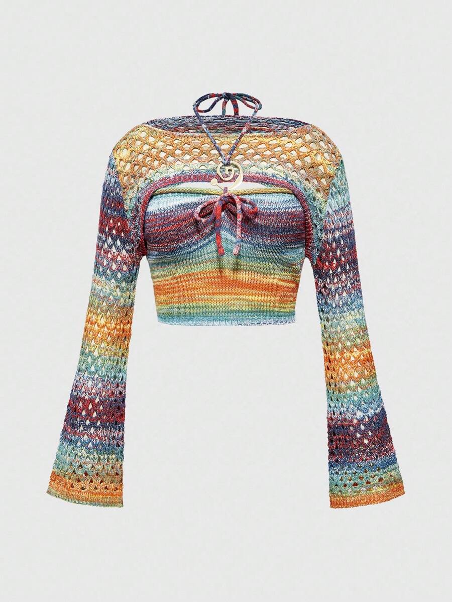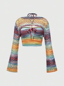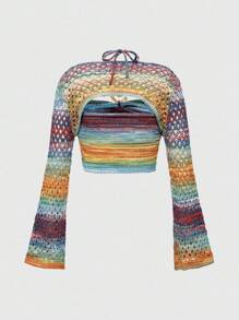 2 pezzi Set di maglia e coprispalle in stile Y2K e hippie con sfumature