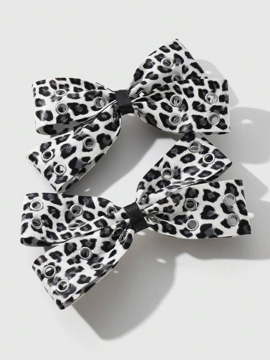 Grunge Punk 2 pezzi Fermagli per capelli stile vintage Y2K, eleganti, punk, in pelle nera con doppia presa d'aria e decorazione a fiocco, adatti per sorelle, amiche per uso quotidiano o come regalo per le vacanze, Ognissanti