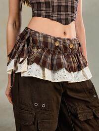 Anime Un abito avvolgente con volant a quadri, una gonna a vita multistrato in stile Y2K, con una cintura regolabile e bottoni (il colore dei bottoni è casuale).