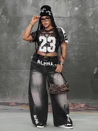 Grunge Punk Jeans a gamba ampia, con lavaggio vintage, stampa a stelle, vestibilità morbida, taglie comode, ideali per l'estate, spiaggia, laurea, concerto di Pasqua, vacanza a Nashville, elegante festival musicale tropicale, stile boyfriend da strada, taglie forti Grunge Punk Jeans asimmetrici strappati in denim, con catena in metallo, rete a maglie larghe e grommet, sexy, elasticizzati, adatti per spiaggia, laurea, Pasqua, concerto, vacanza a Nashville, festival di musica tropicale elegante e carino, taglie forti