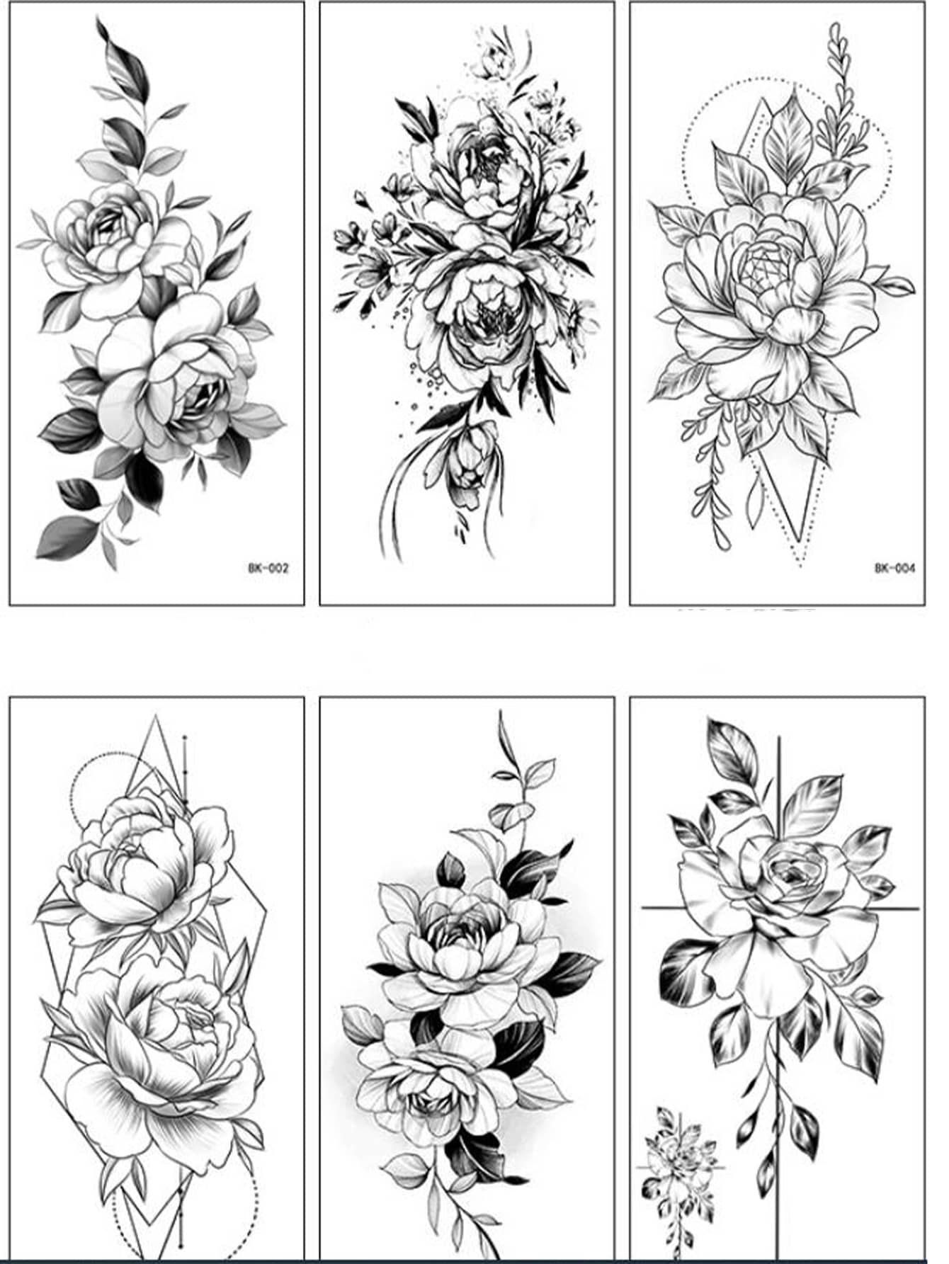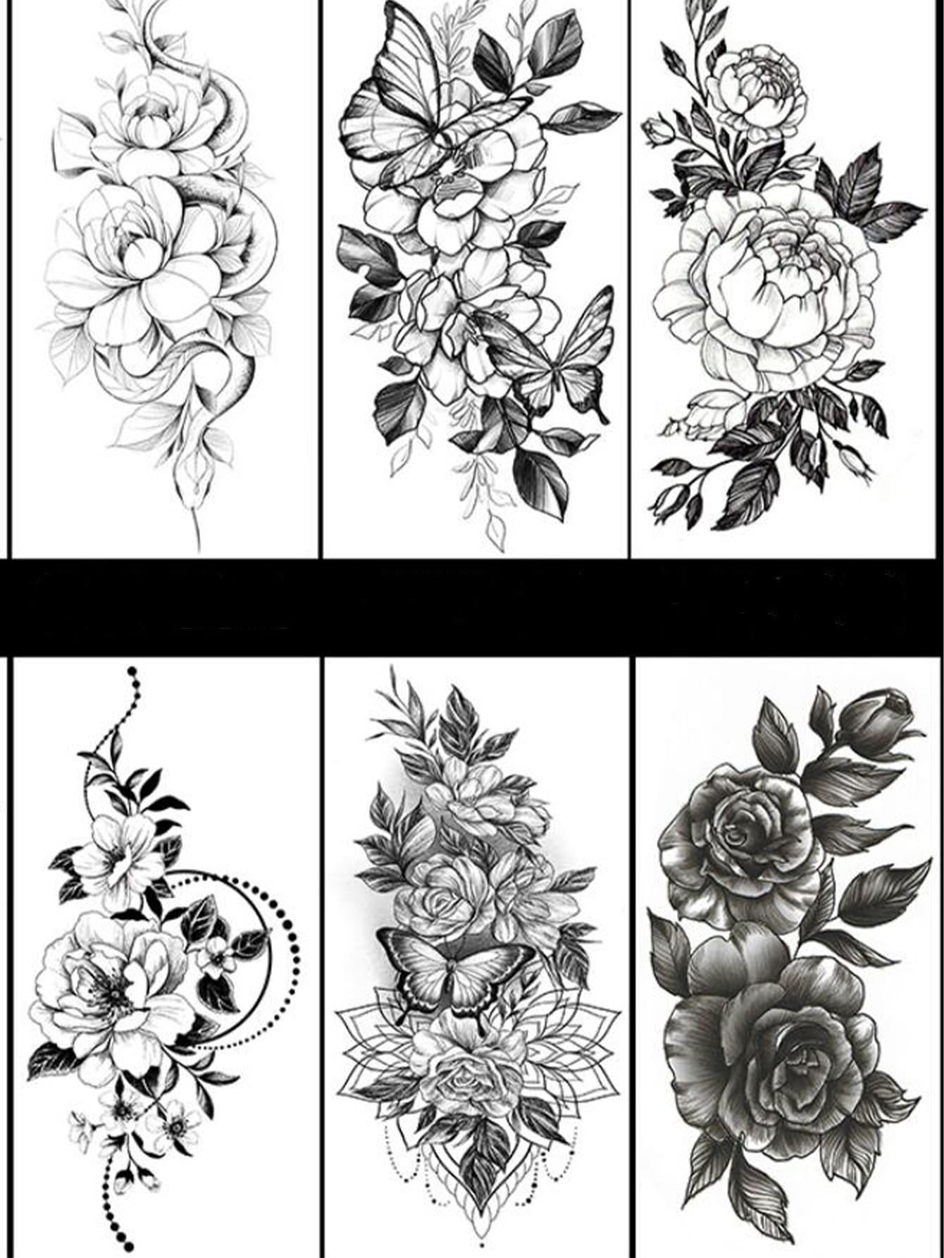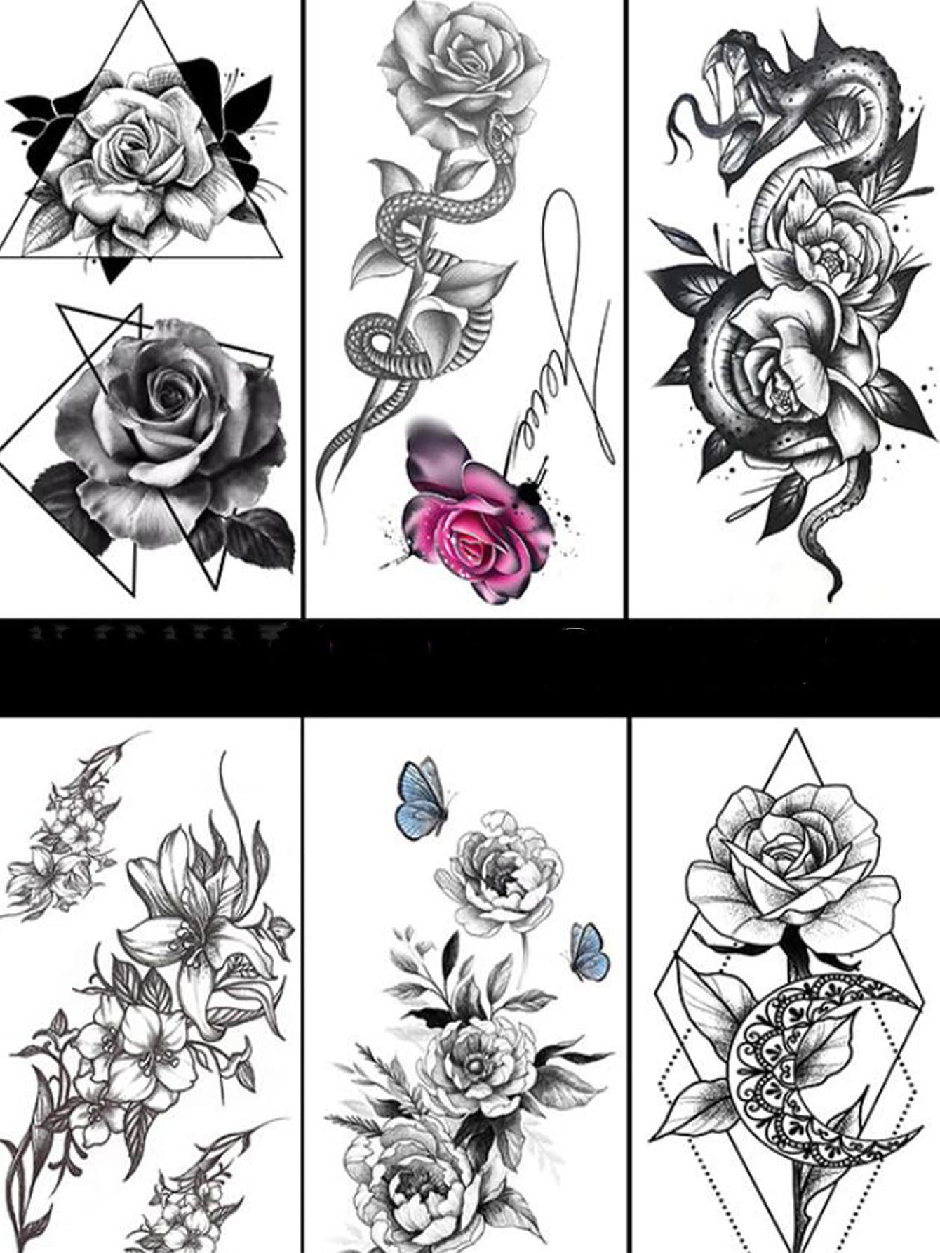 2 fogli di adesivo per tatuaggi con rose e serpenti casuali