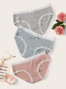 Set mutande a costine con bordo in pizzo 3 pezzi