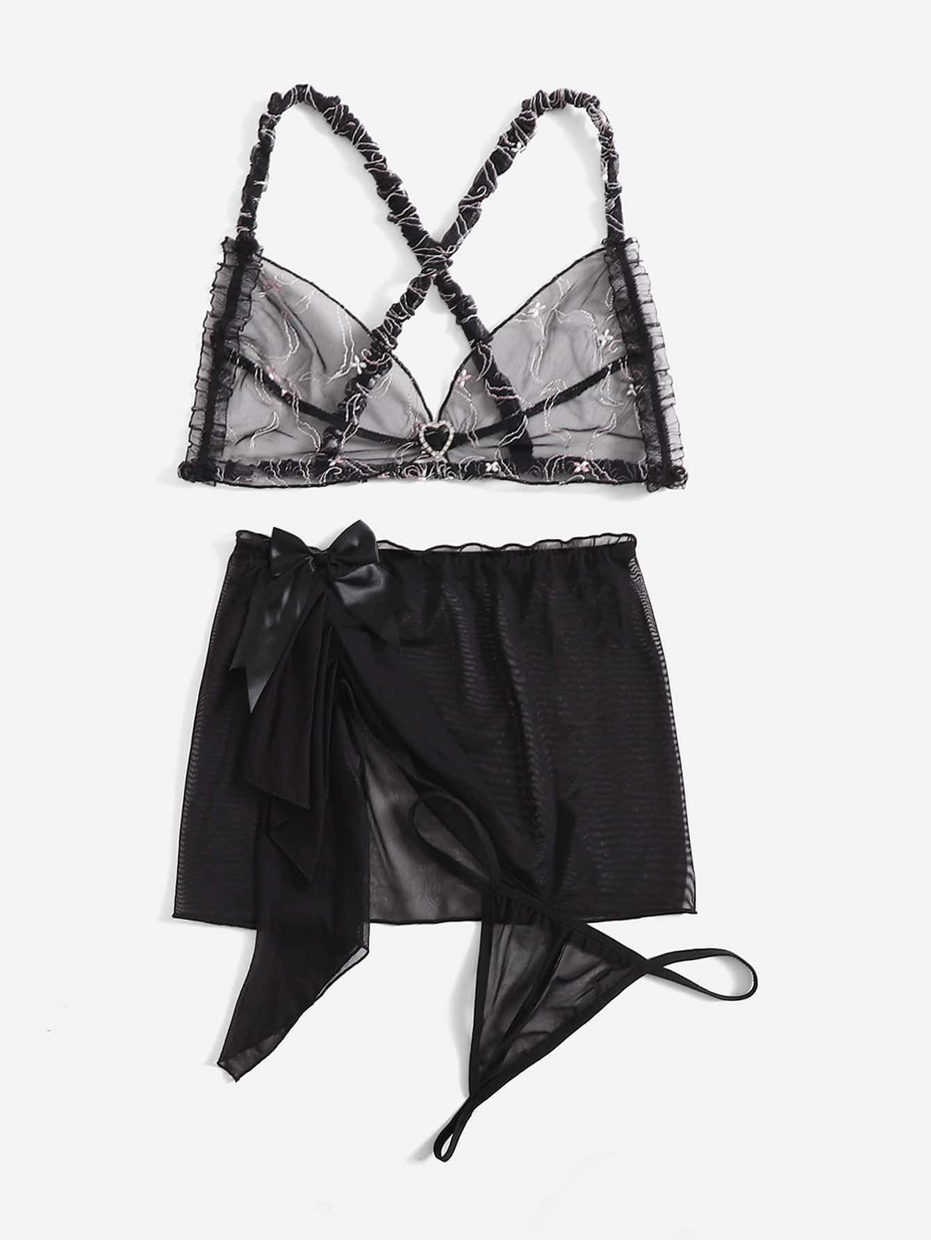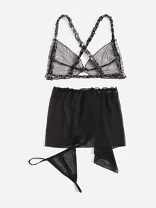 3 pacchi Set lingerie in maglia trasparente con gonna