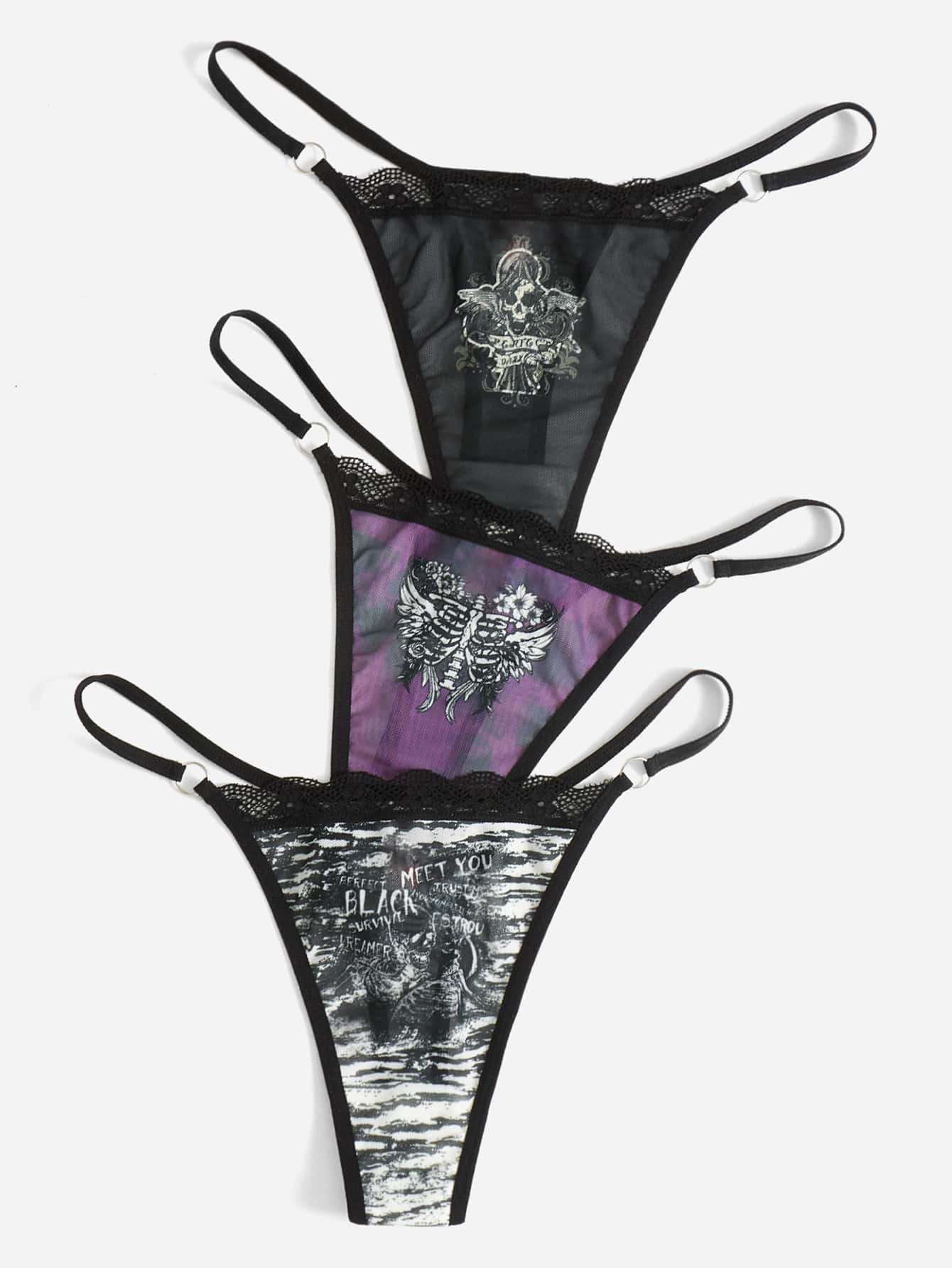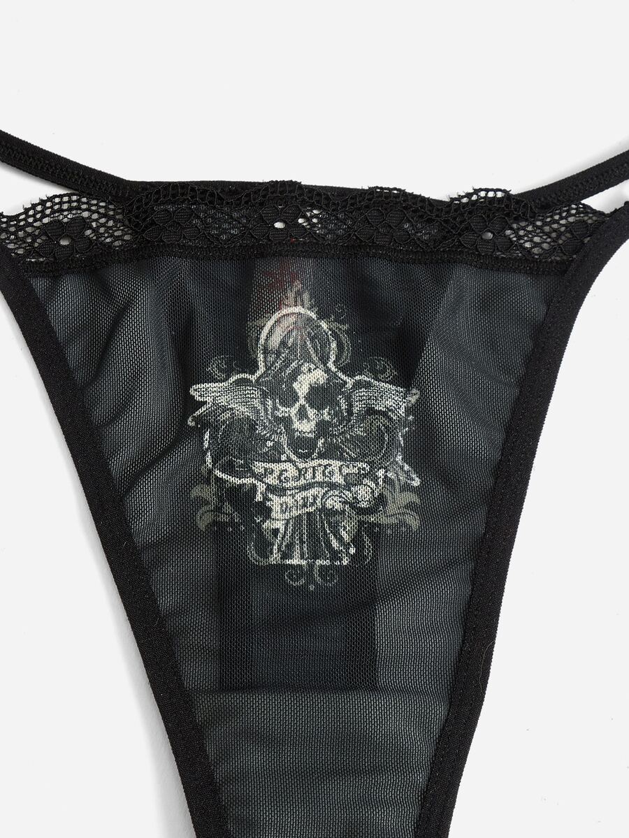 3 pacchi Set perizoma con stampa teschi pizzo a contrasto