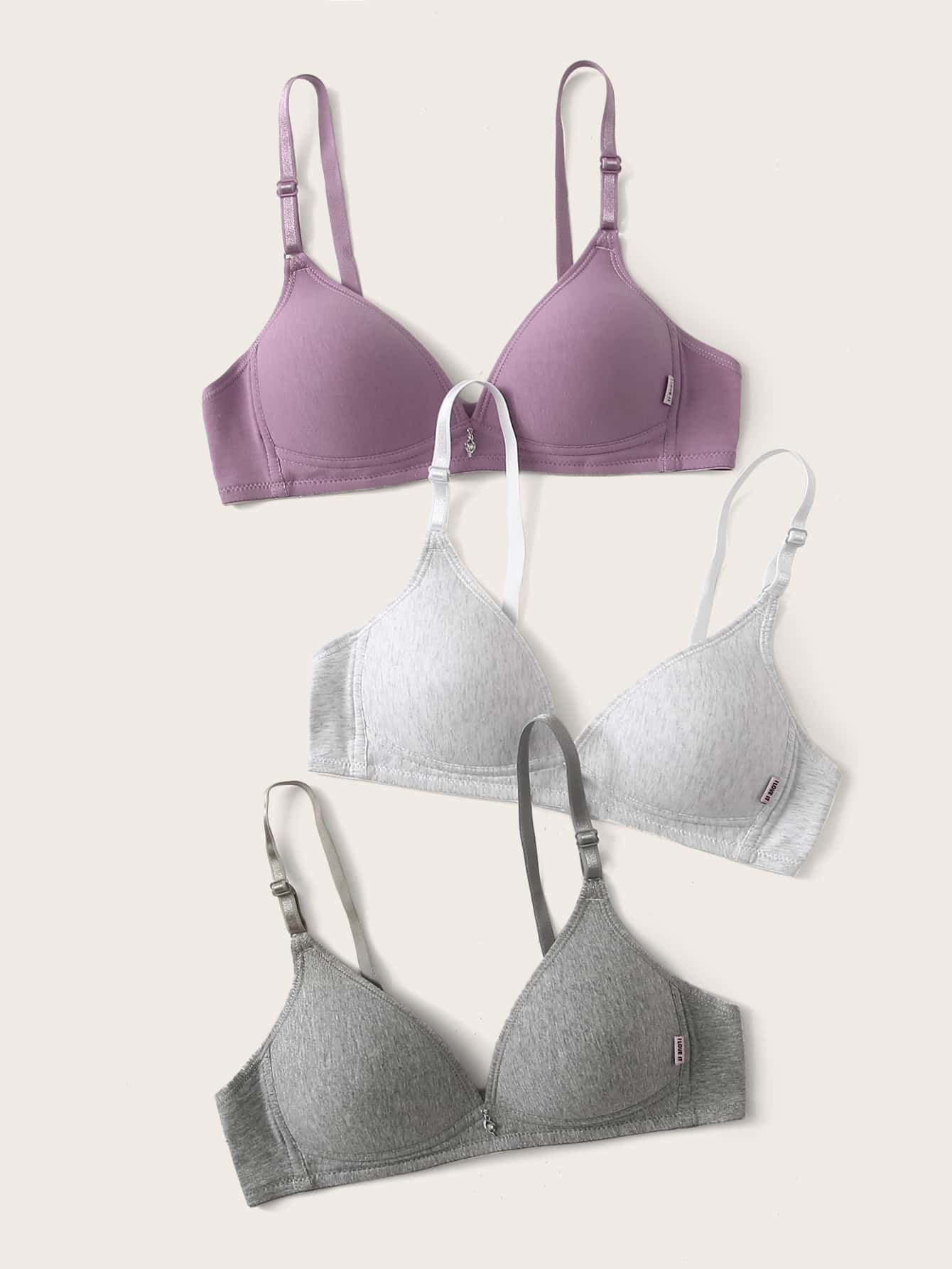 3 pezzi set reggiseno monocolore con cinghia regolabile