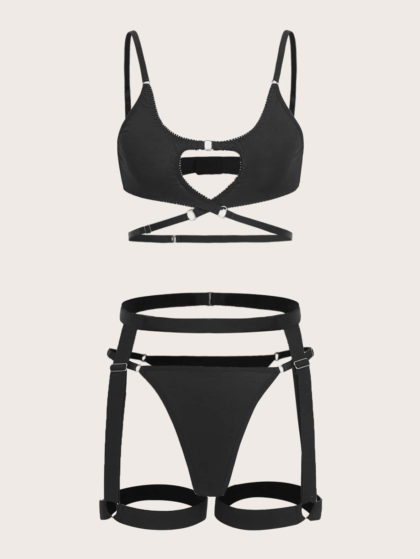 3 pacchi Anello monocolore collegato scavato giarrettiera Set lingerie