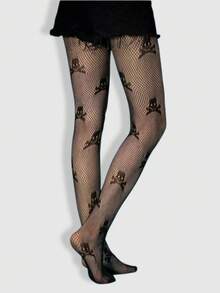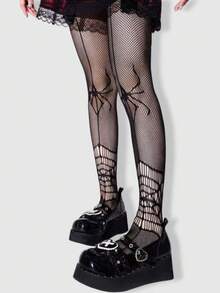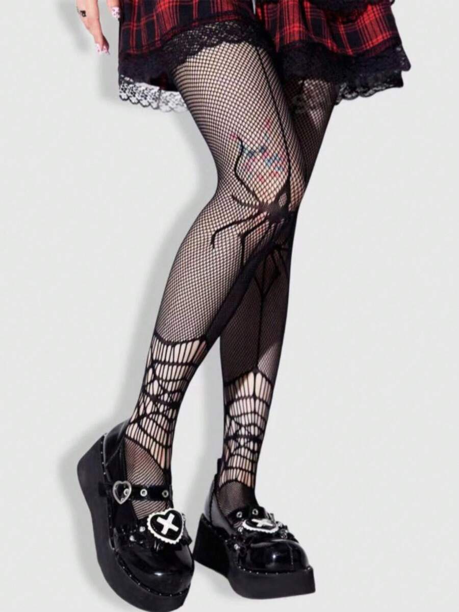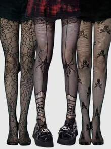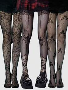 Grunge Punk 3 pezzi Set combinato di ragnatele, teschi di ragno e ragnatele, calze/collant/leggings da donna stile retrò sexy per Ognissanti