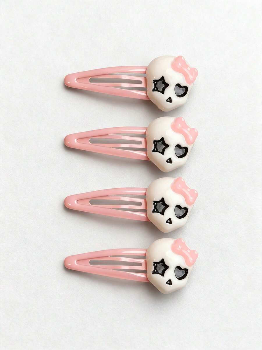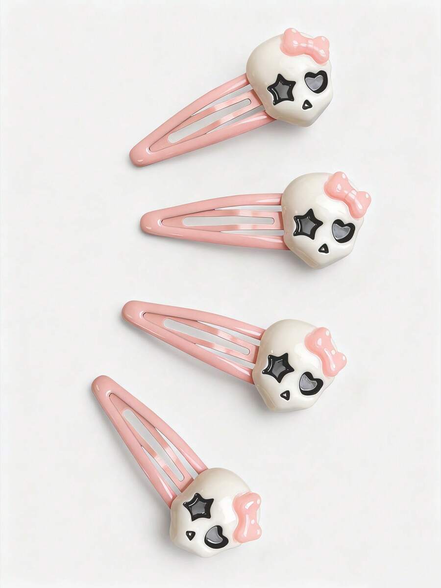 4 mollette per capelli con fiocco rosa e teschio, graziosi fermagli per capelli rosa a pois, accessori per capelli alla moda e versatili.