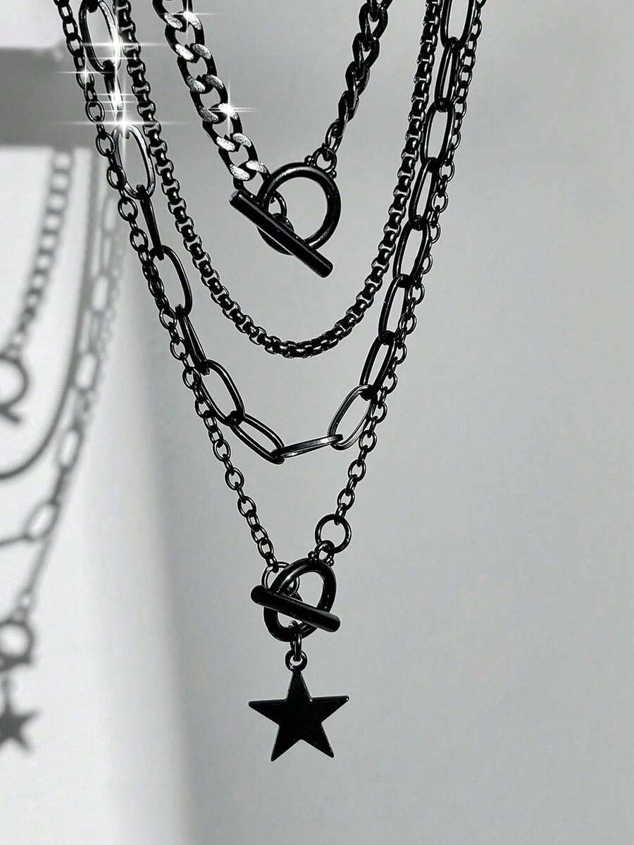 Goth 4 collane alla moda con pendente a forma di stella punk, adatte per uso quotidiano, feste, festival musicali, gioielli con fascino gotico, regalo perfetto