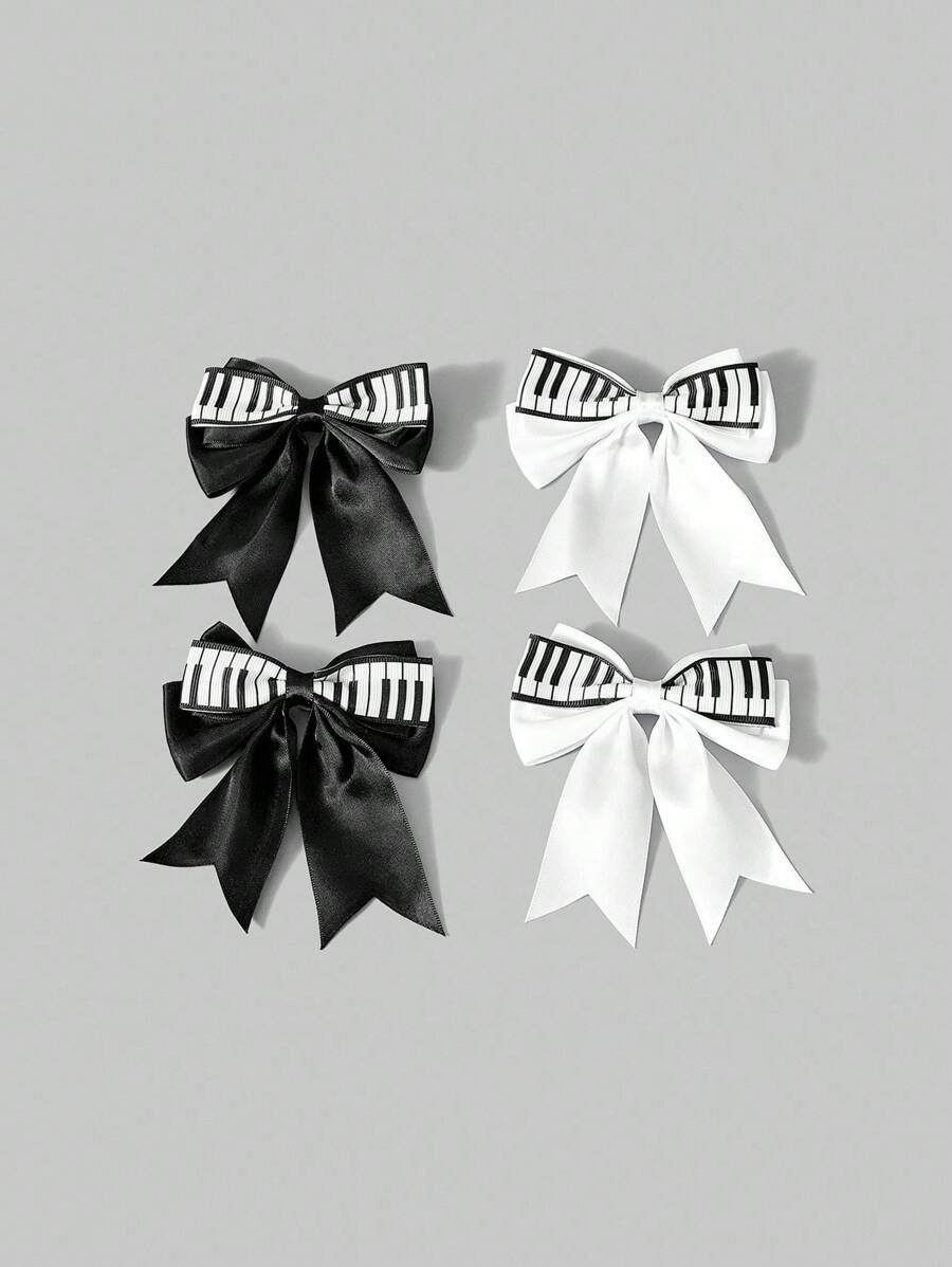 Grunge Punk 4 pezzi Fermagli per capelli carini e dolci con fiocco e stampa a pianoforte, accessori per capelli eleganti adatti per festival musicali, shopping, scuola, stile anime/lolita