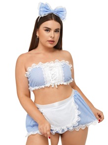 taglie forti 5 pacchi Costume da cameriera a quadri pizzo a contrasto
