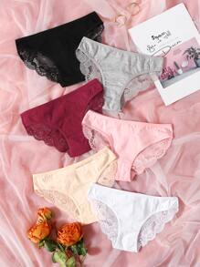 Set Di 6 Mutandine In Pizzo A Contrasto, Lingerie